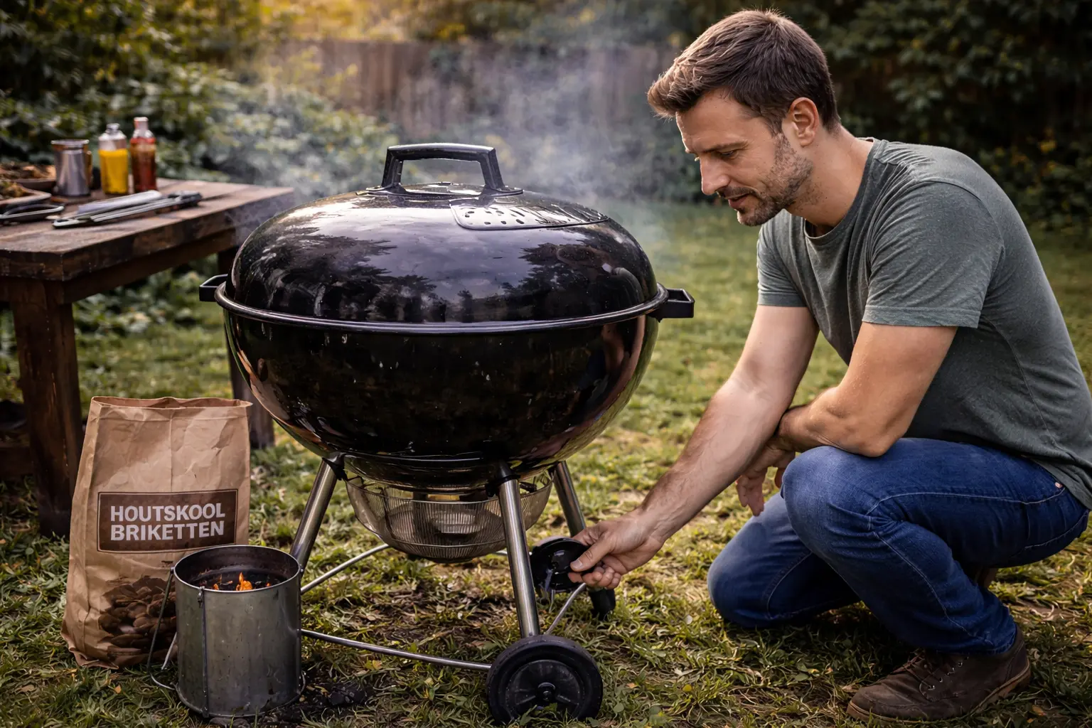 Wacht geduldig bij houtskool/briketten BBQ’s